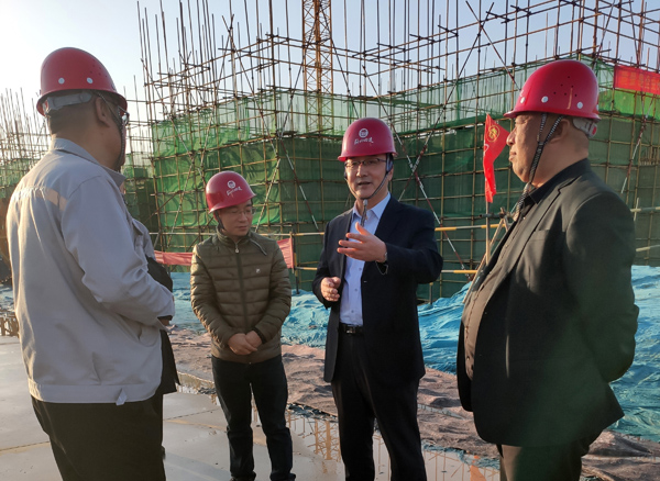 3月22日下午,公司党委书记、董事长董富强到四分公司邢台宁晋善水荣园项目检查指导工作,分公司经理王建民一同参加。